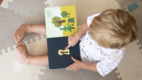 Libro con mecanismos, de cartón y con puntas redondeadas, para que pueda ser manipulado por los niños de manera segura
