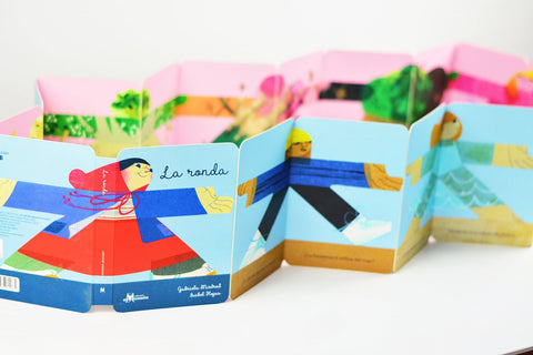 Libro acordeón circular, de cartón y con puntas redondeadas, para que pueda ser manipulado por los niños de manera segura